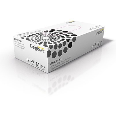 Unigloves Pearl Black Nitrile Disposable Gloves M (Pack of 100)