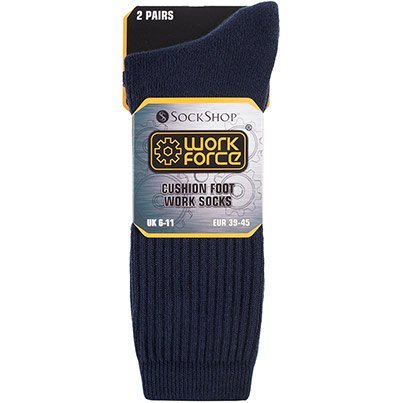 Supplied in packs of two pairs, these luxury cotton-rich socks have Comfort toe seams to help prevent irritation from rubbing, and cushioned soles to make them perfect for busy workers on their feet all day.