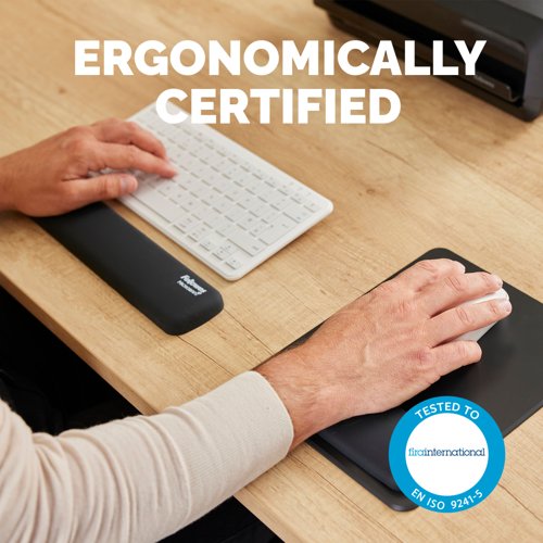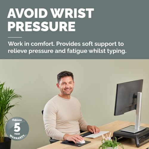 Designed for use with compact (TKL) keyboards, the Breyta Wrist Rest delivers consistent support and exceptional comfort while typing. Its soft-touch surface features an anti-dust coating for a smooth, premium feel, helping to reduce strain during extended use. Built-in Microban protection works continuously to help prevent the growth of bacteria, keeping your workspace cleaner. With a lightweight and space-saving design, it's ideal for modern desk setups and hybrid working environments. Fully recyclable through the Fellowes takeback scheme.