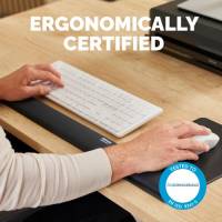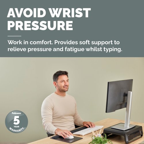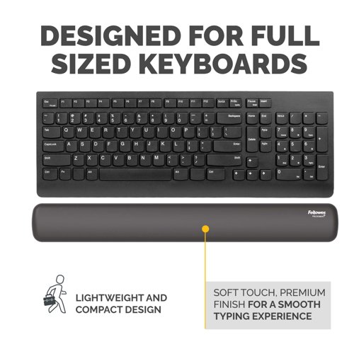 Enhance your typing experience with the Breyta Keyboard Wrist Rest, designed to deliver consistent support and lasting comfort throughout your workday. Its soft-touch surface features an anti-dust coating for a smooth, premium feel that complements any workspace. With integrated Microban protection, the wrist rest actively helps prevent the growth of bacteria, working continuously to keep your desk cleaner. Fully recyclable through the Fellowes takeback scheme, it's a practical addition to any ergonomic setup.