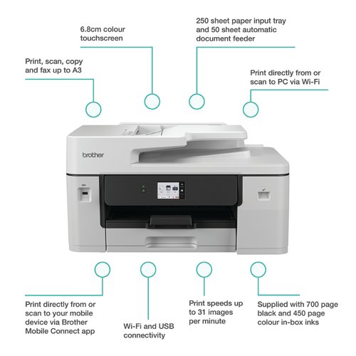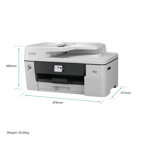 The MFC-J6760DW delivers premium A3 printing, scanning, copying, and faxing in one durable inkjet device. Featuring MAXIDRIVE technology, offering fast print speeds and consistently high-quality results.