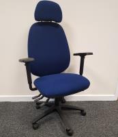 Axiom Kinetic high back chair, tilt mech, seat slider, inf.lumbar, Headrest, multifunction arms in mainline+ royal. No Returns. D&I Extra