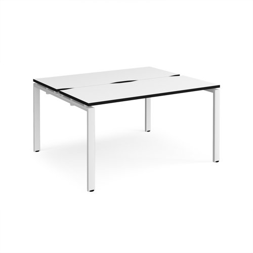 | Two straight desks 1400x600mm back-to-back with scalloped cut outs in the desktops |