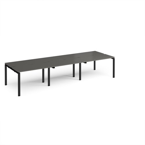 Adapt triple back to back desks 3600mm x 1200mm - black frame, storm grey top