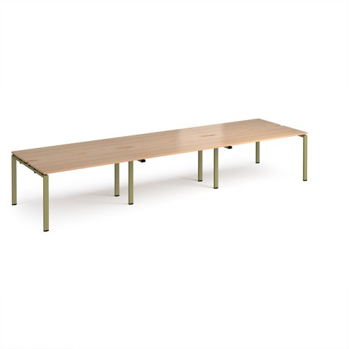 Adapt triple back to back desks 4200mm x 1200mm - green frame, beech top