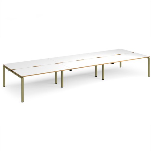Adapt triple back to back desks 4800mm x 1600mm - green frame, white top, oak edge