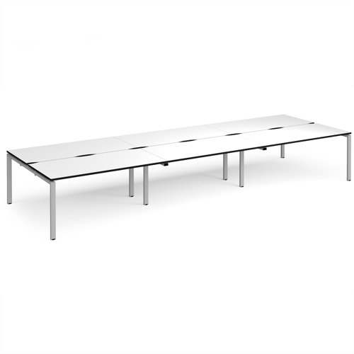 Adapt triple back to back desks 4800mm x 1600mm - silver frame, white top, black edge