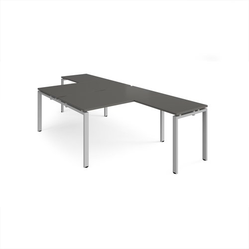 Adapt back to back desks 1400mm x 1600mm with 800mm return desks - silver frame, storm grey top