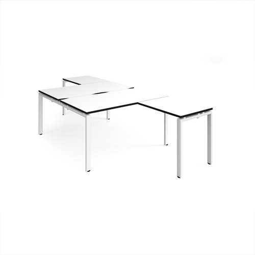 Adapt back to back desks 1400mm x 1600mm with 800mm return desks - white frame, white top, black edge