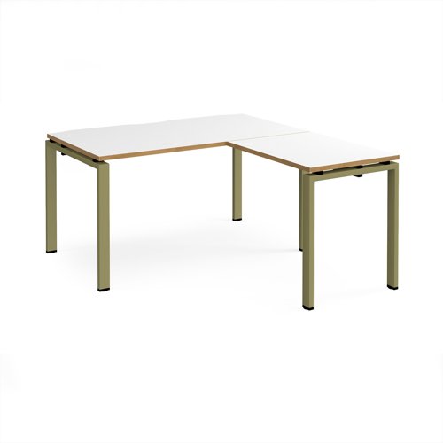Adapt desk 1400mm x 800mm with 800mm return desk - green frame, white top, oak edge