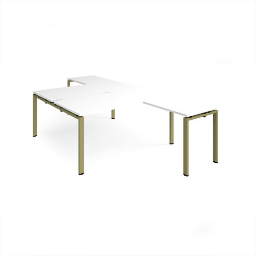 Adapt back to back desks 1600mm x 1600mm with 800mm return desks - green frame, white top