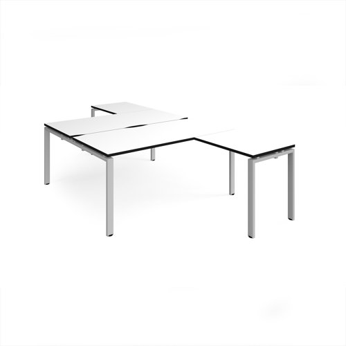 Adapt back to back desks 1600mm x 1600mm with 800mm return desks - silver frame, white top, black edge