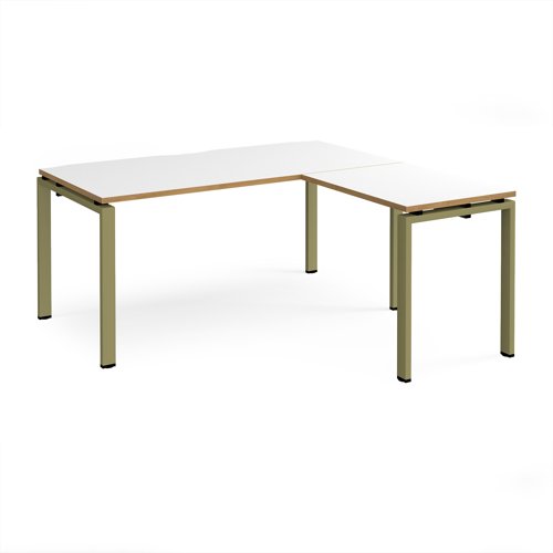 Adapt desk 1600mm x 800mm with 800mm return desk - green frame, white top, oak edge