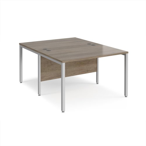 Maestro 25 back to back straight desks 1200mm x 1600mm - silver bench leg frame, Nebraska Oak top