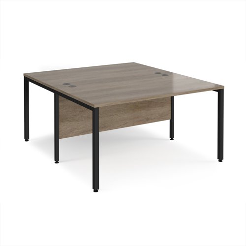 Maestro 25 back to back straight desks 1400mm x 1600mm - black bench leg frame, Nebraska Oak top