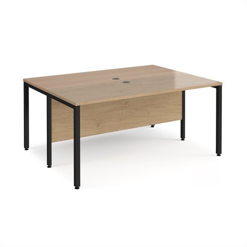 Maestro 25 back to back straight desks 1600mm x 1200mm - black bench leg frame, Kendal Oak top