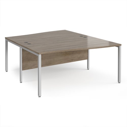 Maestro 25 back to back wave desks 1600mm deep - silver bench leg frame, Nebraska Oak top