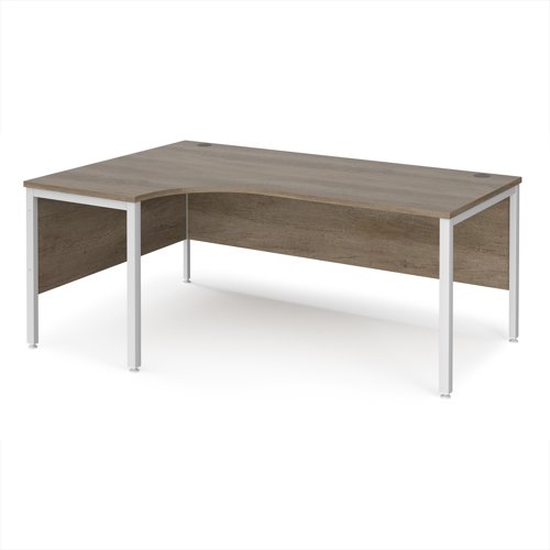 Maestro 25 left hand ergonomic desk 1800mm wide - white bench leg frame, Nebraska Oak top