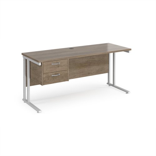 Maestro 25 straight desk 1600mm x 600mm with 2 drawer pedestal - white cantilever leg frame, Nebraska oak top