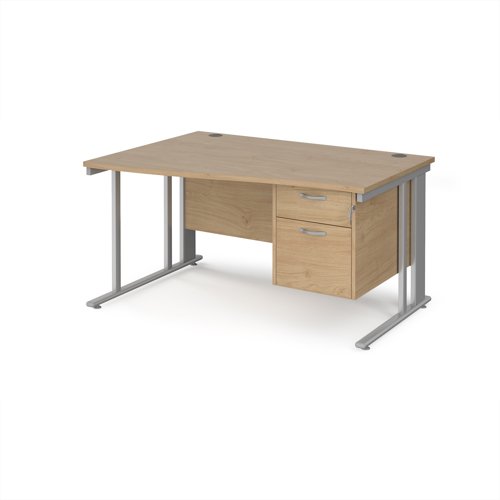 Maestro 25 left hand wave desk 1400mm wide with 2 drawer pedestal - silver cable managed leg frame, kendal oak top