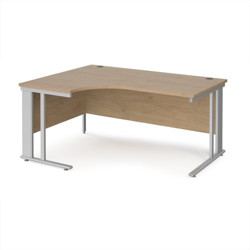 Maestro 25 left hand ergonomic desk 1600mm wide - silver cable managed leg frame, kendal oak top
