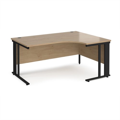 Maestro 25 right hand ergonomic desk 1600mm wide - black cable managed leg frame, kendal oak top