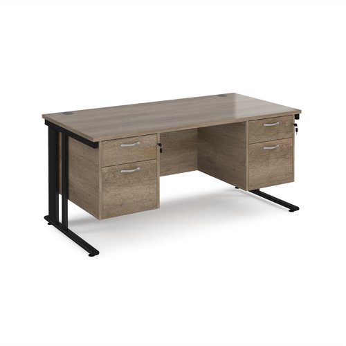 Maestro 25 straight desk 1600mm x 800mm with two x 2 drawer pedestals - black cable managed leg frame, nebraska oak top