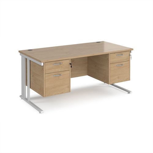 Maestro 25 straight desk 1600mm x 800mm with two x 2 drawer pedestals - white cable managed leg frame, kendal oak top