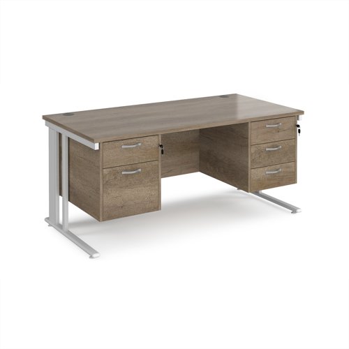 Maestro 25 straight desk 1600mm x 800mm with 2 and 3 drawer pedestals - white cable managed leg frame, nebraska oak top