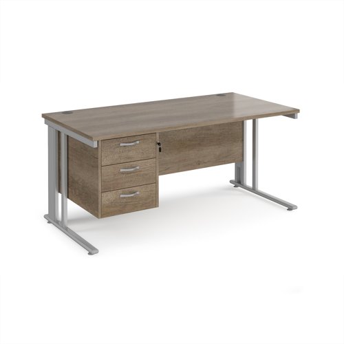 Maestro 25 straight desk 1600mm x 800mm with 3 drawer pedestal - silver cable managed leg frame, nebraska oak top