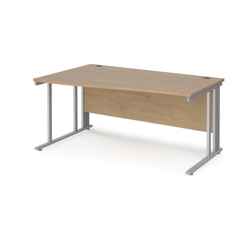 Maestro 25 left hand wave desk 1600mm wide - silver cable managed leg frame, kendal oak top