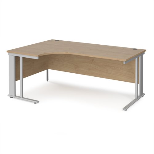 Maestro 25 left hand ergonomic desk 1800mm wide - silver cable managed leg frame, kendal oak top