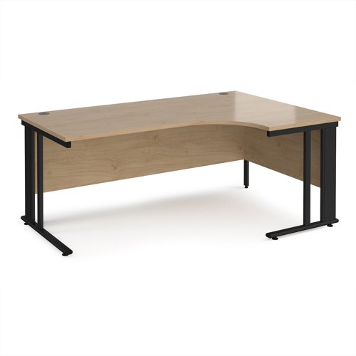 Maestro 25 right hand ergonomic desk 1800mm wide - black cable managed leg frame, kendal oak top
