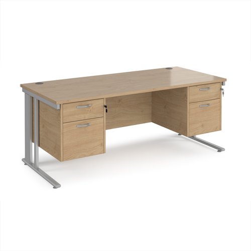 Maestro 25 straight desk 1800mm x 800mm with two x 2 drawer pedestals - silver cable managed leg frame, kendal oak top