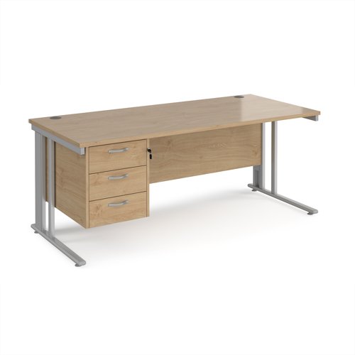 Maestro 25 straight desk 1800mm x 800mm with 3 drawer pedestal - silver cable managed leg frame, kendal oak top