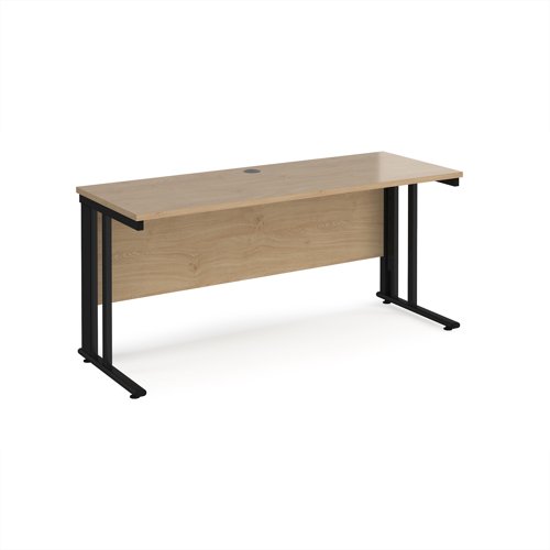 Maestro 25 straight desk 1600mm x 600mm - black cable managed leg frame, Kendal Oak top
