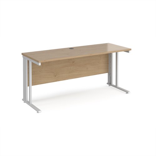 Maestro 25 straight desk 1600mm x 600mm - white cable managed leg frame, Kendal Oak top