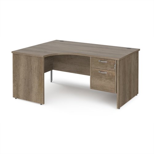 Maestro 25 left hand ergonomic desk 1600mm wide with 2 drawer pedestal - nebraska oak top with panel end leg