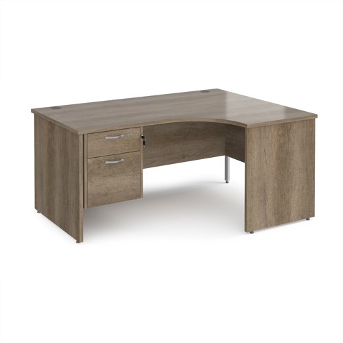 Maestro 25 right hand ergonomic desk 1600mm wide with 2 drawer pedestal - nebraska oak top with panel end leg