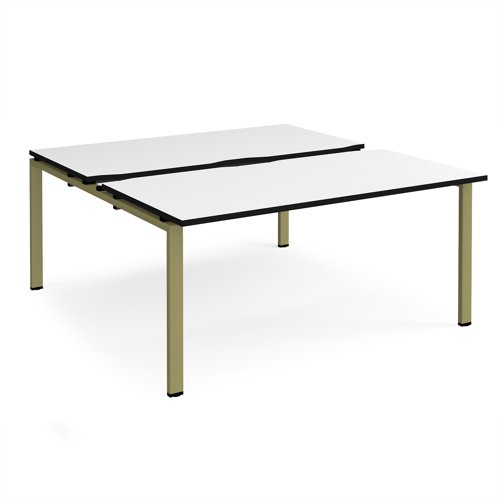 Adapt sliding top back to back desks 1600mm x 1600mm - green frame, white top, black edge