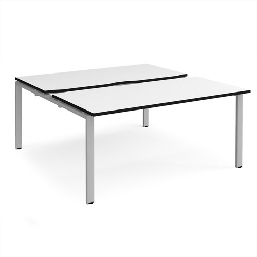 Adapt sliding top back to back desks 1600mm x 1600mm - silver frame, white top, black edge