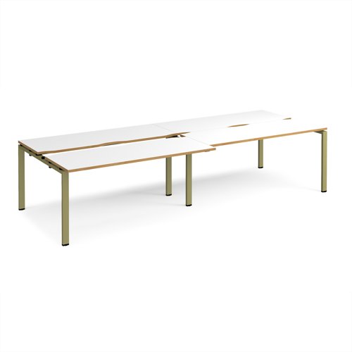 Adapt sliding top double back to back desks 3200mm x 1200mm - green frame, white top, oak edge