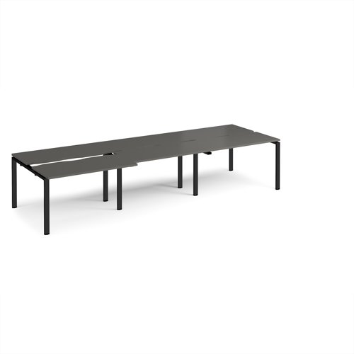 Adapt sliding top triple back to back desks 3600mm x 1200mm - black frame, storm grey top