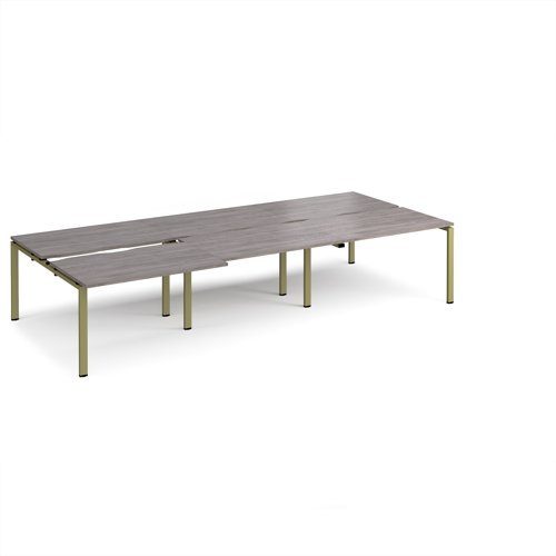 Adapt sliding top triple back to back desks 3600mm x 1600mm - green frame, grey oak top