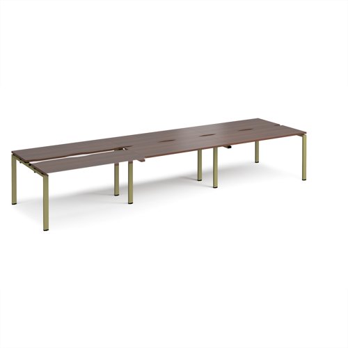 Adapt sliding top triple back to back desks 4200mm x 1200mm - green frame, walnut top