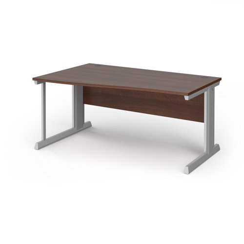 Vivo left hand wave desk 1600mm - silver frame, walnut top