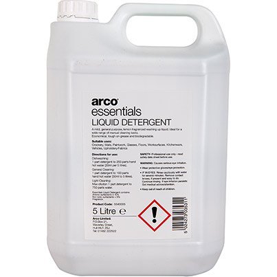 - This affordable, ethically sourced and safety-compliant Arco Essentials liquid detergent is ideal for general cleaning purposes, though it is particularly great as a washing-up liquid. Clean dishes, work surfaces and even walls with this mild, general-purpose detergent to achieve optimum cleaning results.