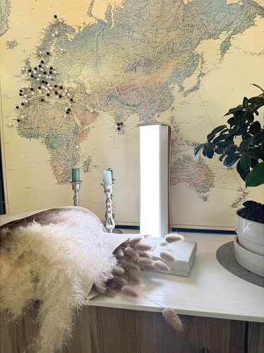 The Dayvia, modern, stylish and lightweight lamp can be used for any purpose. Its pure design will add a trendy touch to any interior. This powerful and safe lamp offers two therapeutic lighting modes, including the effective 480nm Blue-Cyan mode, providing well-being and vitality, attenuating depressive states, including winter depression due to lack of light. Supplied in white.