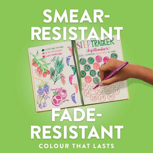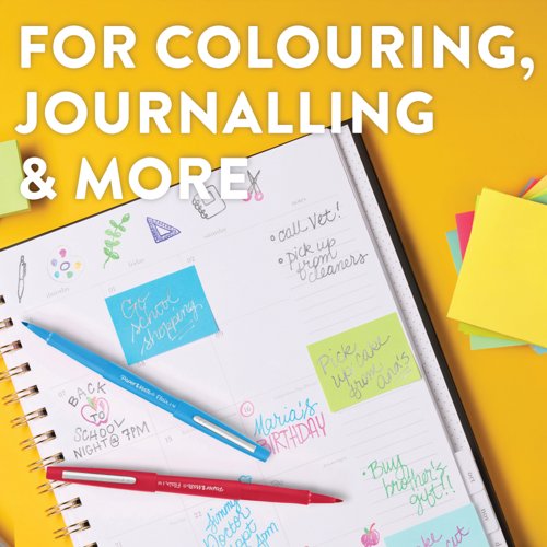 These great quality felt tip pens are long lasting and highly durable, with water-based ink that is quick drying, and smear and smudge resistant. The fibre tip features a durable, metal reinforced point and the ink is designed not to bleed through paper for a professional finish. With a medium tip for a 0.8mm line width, ideal for everyday writing and drawing. This pack contains 16 pens in assorted colours.