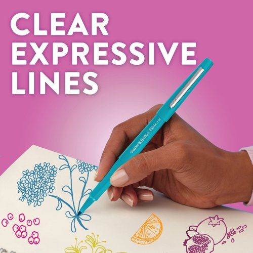 - These great quality felt tip pens are long lasting and highly durable, with water-based ink that is quick drying, and smear and smudge resistant. The fibre tip features a durable, metal reinforced point and the ink is designed not to bleed through paper for a professional finish. With a medium tip for a 0.8mm line width, ideal for everyday writing and drawing. This pack contains 16 pens in assorted colours.